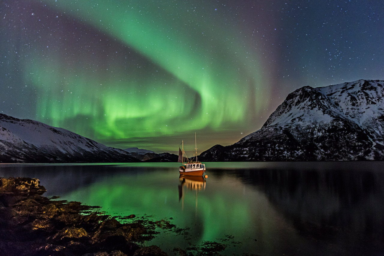Fishing boat on fjord with northern lights, Norway (via Frank Olsen) Tags:BoatfjordlandscapeNorwaynothern lights