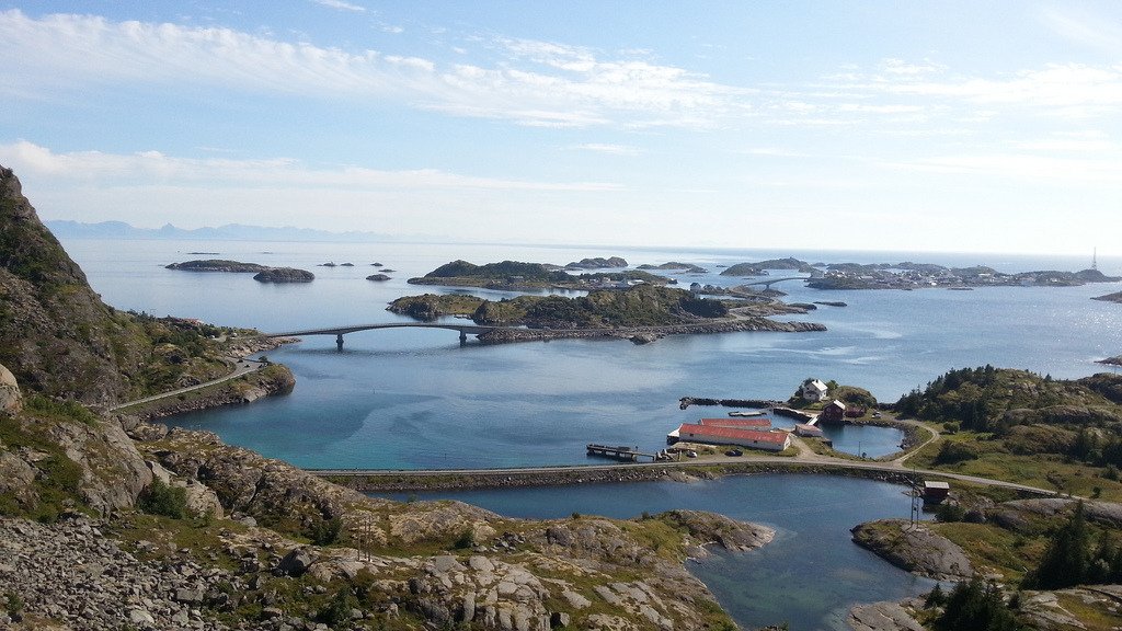 Henningsvær is a fishing village located on several small islands off the southern coast of Austvågøya in the Lofoten archipelago in Norway. (by donjarleone) Tags:aerialHenningsvaerNorgeNorwayphotographyview
