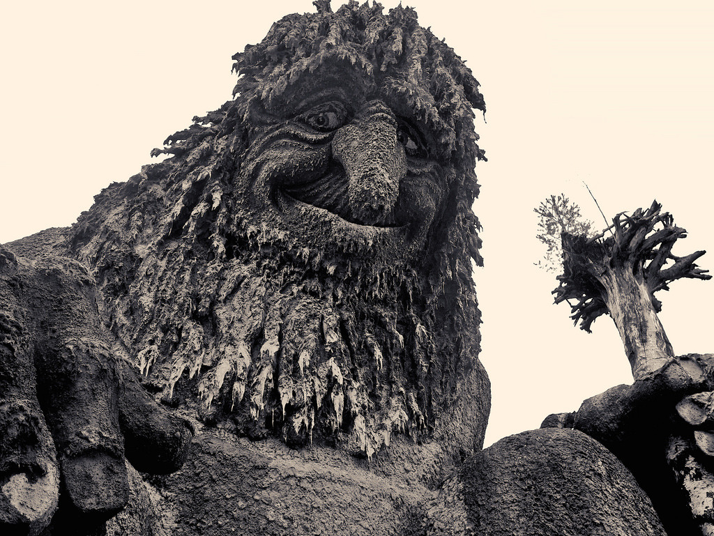 The Giant. The 46 feet high troll is guarding the entrance to the fairy tale grotto at Hunderfossen Familypark, Norway. (by hammershaug) Tags:Norwaytroll