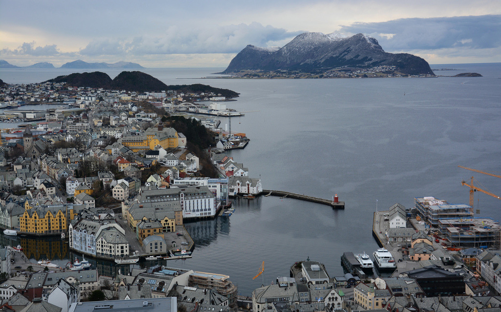 Vinter i Ålesund havn og p