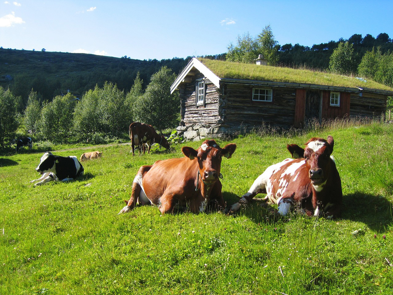 Happy Norwegian cows basking in the sun.