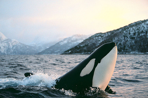 Orca by Jonathan Ball Juvenile female Killer Whale (Orcinus Orca) illuminated by warm morning light. Tysfjord, Norway Print Available http://flic.kr/p/73bV2Y Tags:FlickrNorway