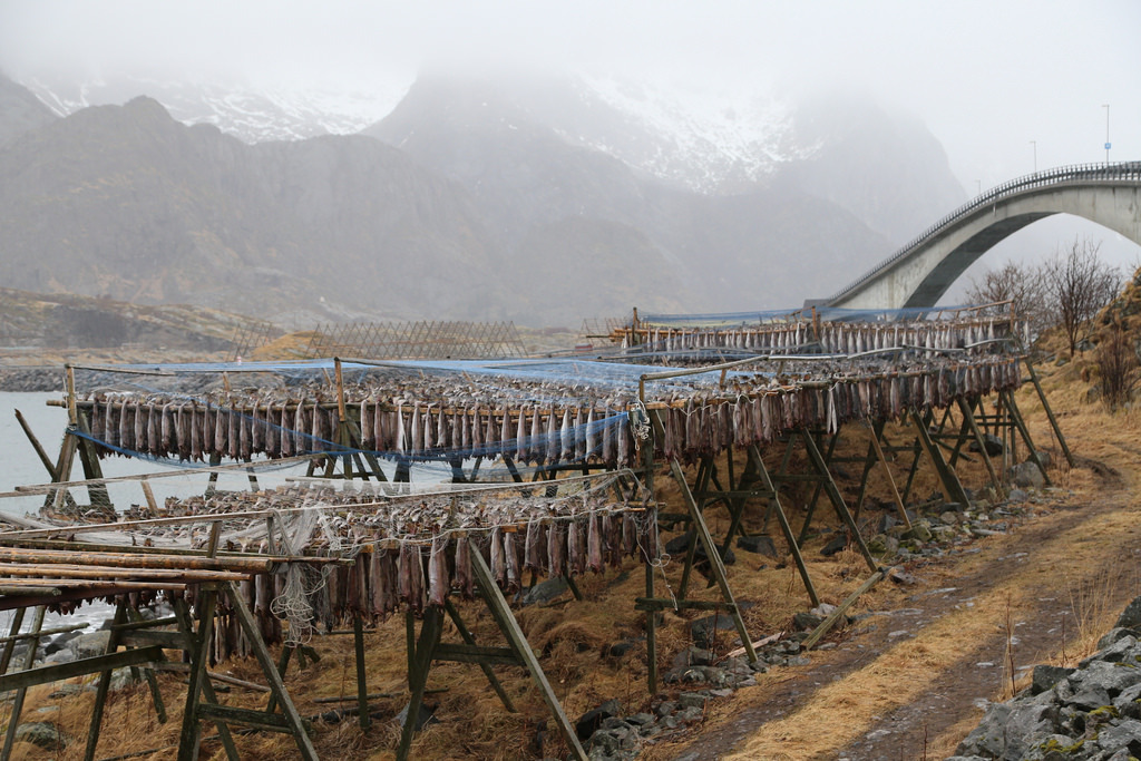 Stockfish drying area by maarten49 Driving on the 816 road on the Lofoten in Norway to Heimoya we passed a Stockfish drying area around the Henningsvaerbrue. Later we tasted the stockfish and it tasted a lot better than this view shows. It tasted delicious.