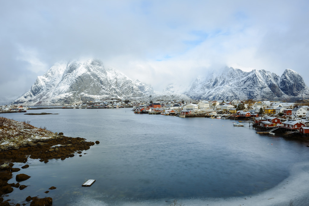 Reine by smithmakaay Late morning in Reine,one of the most famous fisherman village in Lofoten Island. We stayed in one cabin over there last month. This should be the last snow before summer. http://flic.kr/p/tvGrEF Tags:FlickrNorway
