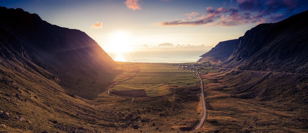 Unstad | Panorama (Lofoten Islands) by Einar Angelsen The most beautiful place in the world. Located 68*9´North in the Atlantic ocean. When you get out of the tunnel and see this scenery you are stopping your car. I was at this top for 3 hours watching the sunset, and every car stopped when they came out of the tunnel.
