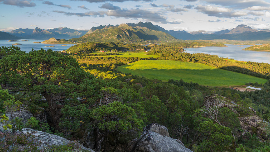 Fra toppen av Grønøy by Kim G. Skytte Mot Grønøy Gård, Engavågen, Valen, Bjærangsfjorden og Glomfjorden. From atop island Grønøy on the coast of Nordland. www.kimgskytte.com http://flic.kr/p/hGmF5a Tags:FlickrNorway