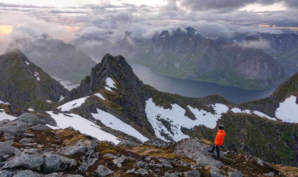 Midnight in arctic wonderland by dichiaras Self portrait on top of Munken (780m above sea level), Lofoten, Norway, about 200km North of the arctic circle at midnight sharp. While it’s not obvious from the photo, I’m standing next to a few hundred meters deep cliff: fortunately there was no wind and the “night” (actually those days the sun never sets in Lofoten) was very nice, but still right after the shot I returned to a safer position given that my head would soon start spinning.