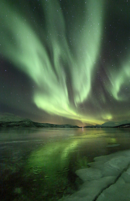 by Thorbjørn Riise Haagensen Aurora borealis over Takvatn, Northern Norway. Solid ice, perfect for ice-skating. Have a look at my new page on Facebook http://flic.kr/p/dC7yCf Tags:FlickrNorway