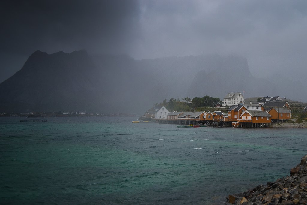 Heavy rain over Sakrisøy – Lofoten by Cyrus Smith NW