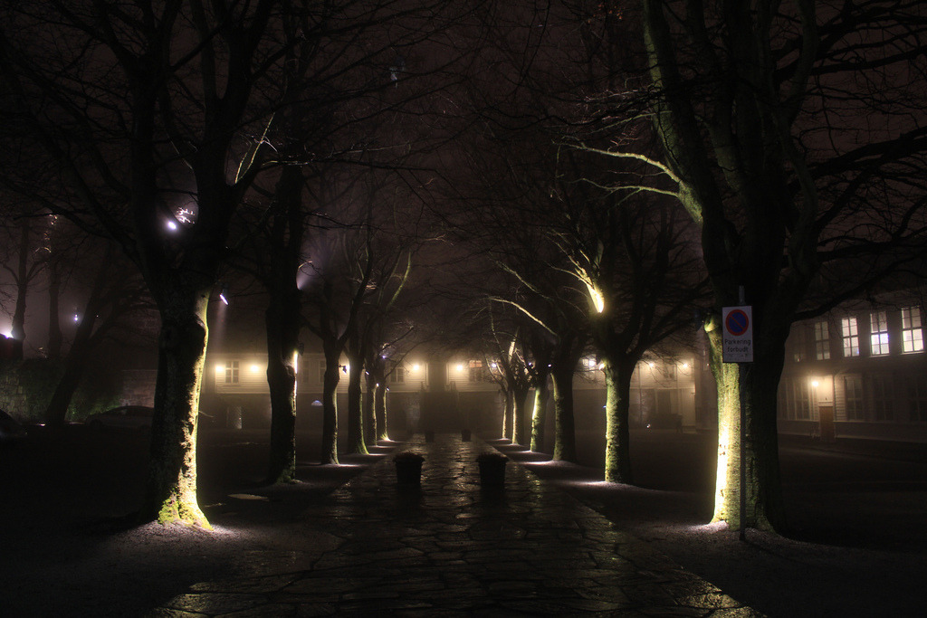 Untouched nightshot of Stavanger Cathedral School, Stavanger, Norway by Roy D Freeman I loved how the trees were lined up and lit. The misty night made for an interesting shot. http://flic.kr/p/dW1Pcw Tags:FlickrNorway
