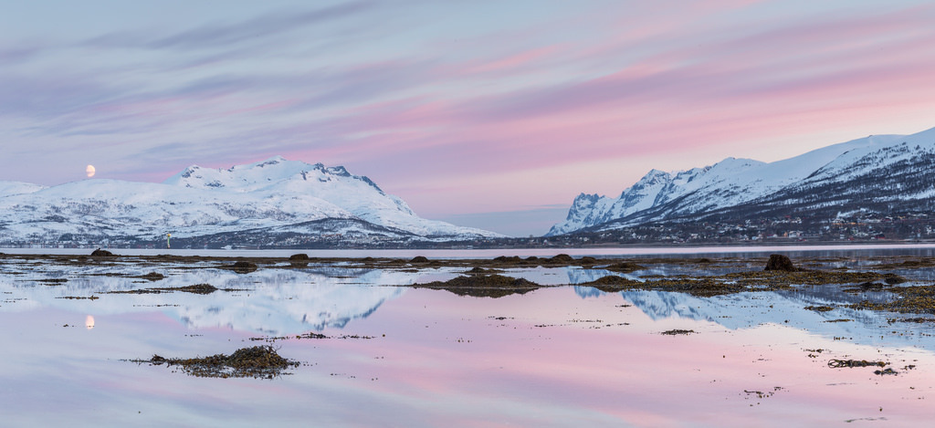 02:30 AM by hanneketravels This photo was taken at 02:30 AM, just before sunrise in Tromsø, Arctic Norway. In only about a week the sun will be up all day, but until then we can enjoy some beautiful sunsets and sunrises. This is taken from Langnes (near the airport) looking in the direction of Ersfjorden.
