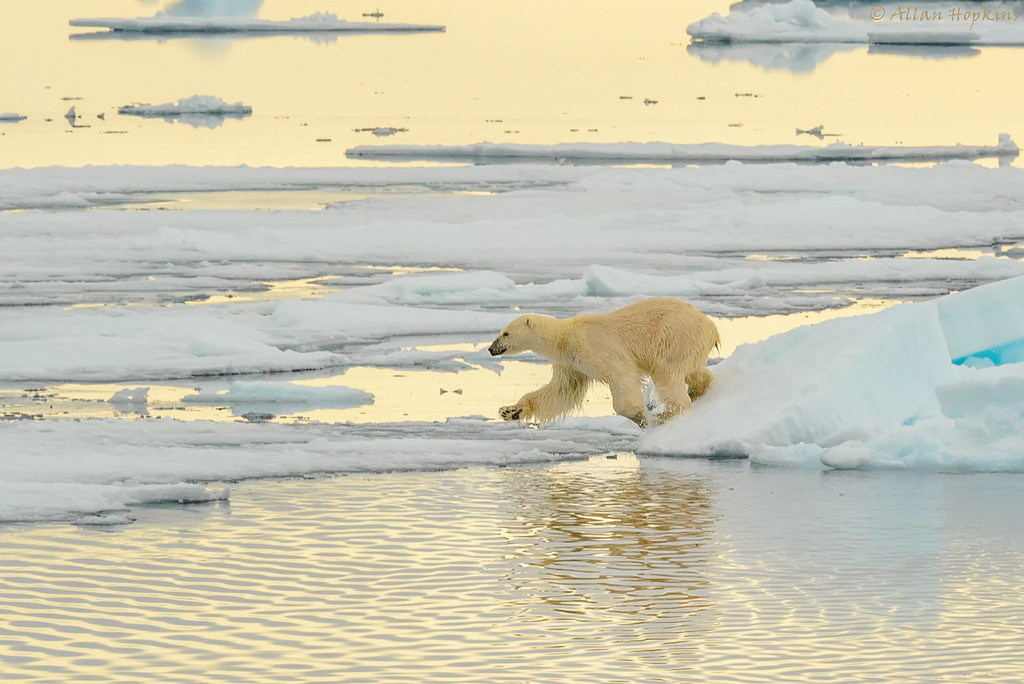 Polar Bear (Ursus maritimus) by Hoppy1951 Female leaping as she hunts across the pack ice. She’s quite thin, so she needs to have a successful hunt soon if she is to survive. Near Velkomstpynten, N. Spitsbergen, Svalbard, Norway.