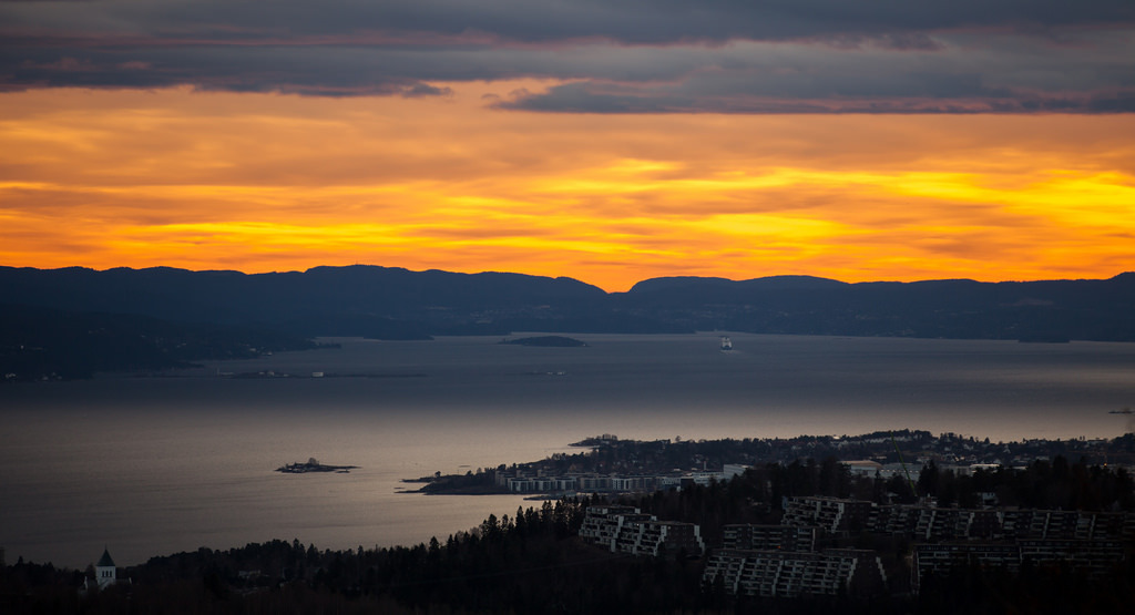 Oslofjord, Norway. (Explored at # 3) by Bhalalhaika Ullerntoppen at bottom right. Fornebu right behind Ullerntoppen.