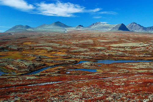 An einem Sonnentag im späten September 2006 präsentierte sich die Fjellfärbung im Rondane Nationalpark in ihrem prächtigen Farbenkleid. Zahlreiche 2000er-Gipfel krönten diese fast unwirklich erscheinende Szenerie… Diese Halbtageswanderung war eines der Highlights auf unserer 8-wöchigen Skandinavien-Tour! http://flic.kr/p/qqv5u