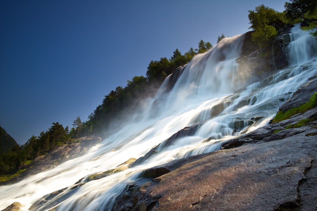 Furebergsfossen waterfall, Norway by Bergen64 We are in the midst of the dark season in Norway. Here on the western coast in the south, the days are short, wet and windy. How joyous then, to recall the images of last summer! f/11, 1/5 sec., ISO 100. http://flic.kr/p/iUWyBF Tags:fotolandscapenatureNorgeNorwayNorwegianphotophotographyScandinavian