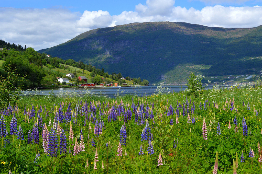 Olden, Nordfjord, Norway by Seventh Heaven Photography Olden is located at the mouth of the Oldeelva river in the Oldedalen valley along the Nordfjord. The village is in Sogn og Fjordane County. Wild Lupins in Olden along the Nordfjord http://flic.kr/p/eYW8x9 Tags:fotolandscapenatureNorgeNorwayNorwegianphotophotographyScandinavian
