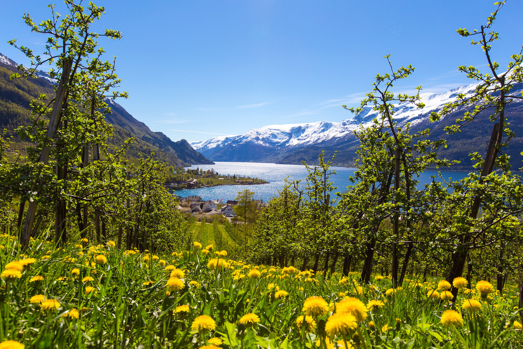 Hardanger spring by kjelljoran Dandelions between the fruittrees in Lofthus, Hardanger. http://flic.kr/p/TyeNPP Tags:fotolandscapenatureNorgeNorwayNorwegianphotophotographyScandinavian
