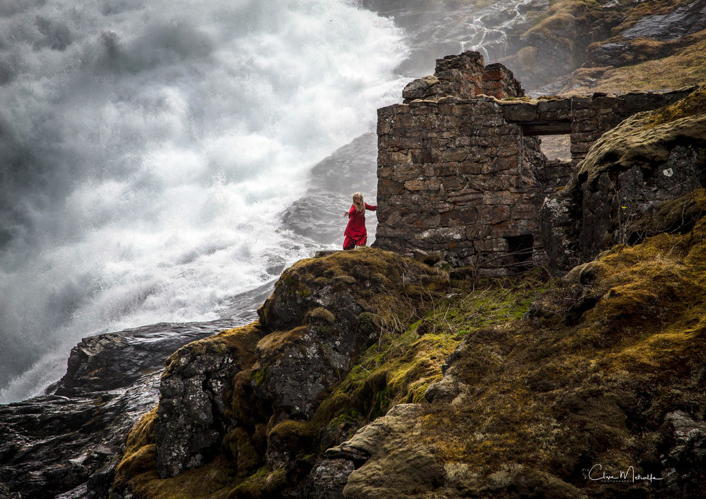 The waterfall is located about 1.5 kilometres (0.93 mi) northeast of Myrdal Station. During the main tourist season in the summer an actress dressed as a legendary Huldra (a seductive forest creature in Scandinavian folklore) dances and sings in front of the waterfall as the trains enter the station for the amusement of the tourists. The Huldra actresses are all students from the Norwegian ballet school.