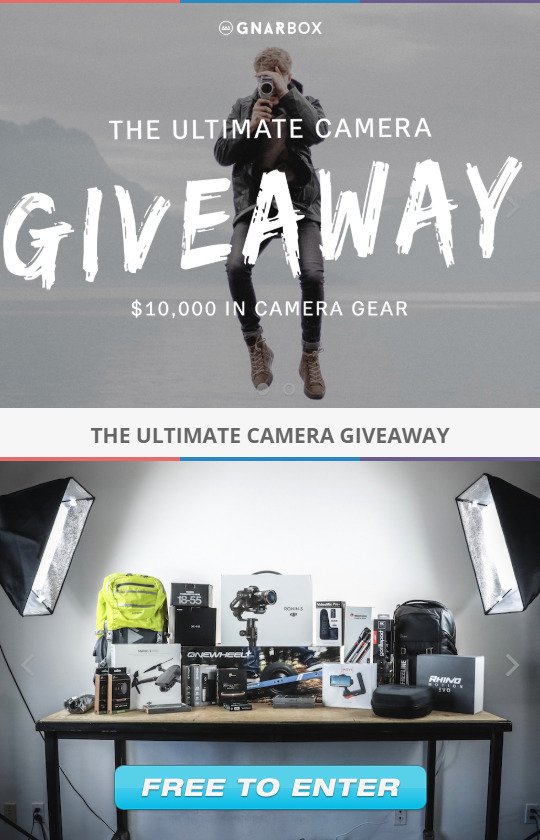 I love photography and have entered this free giveaway for 10k worth of camera gear.  It’s a free and simple giveaway, and super easy to enter!
