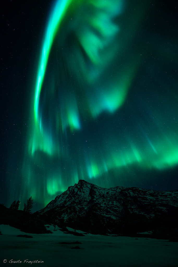 The green show by Gaute Froystein Photography Had a trip out with some friends a few nights before the “big hit” that sparked auroras way south in Europe. The night this was taken we got a short but very intense show. Hope everyone has a great weekend! Remember you are always welcome to drop by my Facebook page for more pictures.
