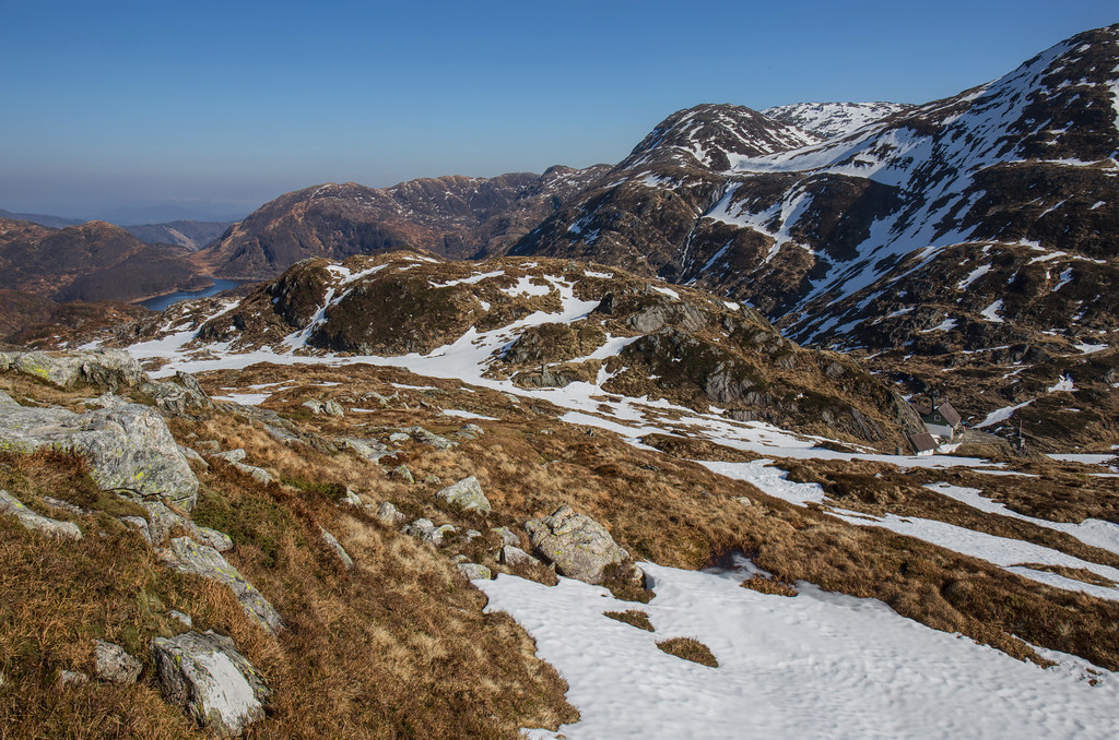 My sunday trip by Siggi007 This area is a popular hiking area for people in and around Bergen city and Gullfjellet (Gold mountain) is the highest in this region, with it`s 987 mtr. above sea level. The rescue cabin, which is seen to the right in the picture, was originally built in 1929, but has since been restored and expanded. The cabin is open all day all year round and