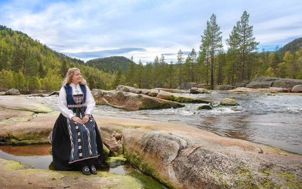 When I was confirmed most had red waistcoats on their Sunnhordland bunads, but I would rather have blue which was a lesser used alternative. Now it’s probably just as common to have blue as red (it also comes in green). The color of the bunad jewelry and the pattern on the belt and the breast cloth are many and optional.
