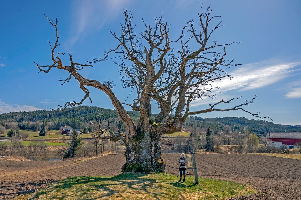 The oak has a circumference of 9.21 metres (30.2 ft), measured in 2001, and a height of around 13 metres (43 ft), which makes the Mollestad Oak one of the largest trees in Norway. Estimates of the age are between 450 and 550 years, but there are also outliers to around 1000 years. The oak is traditionally a knot oak and the trunk extends to a height of four meters.