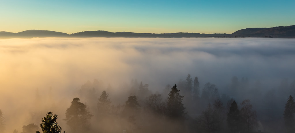Trees in the fog by Thor Edvardsen Foggy sunset in Oslo, Norway https://flic.kr/p/2k8NheX Tags:FlickrIFTTT