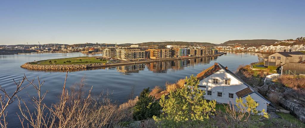 The river empties into the Skagerrak in the center of the city of Kristiansand on the southern coast of Norway.