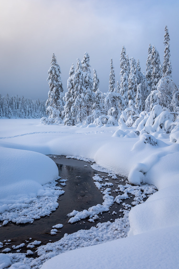 Winter by Lars Øverbø Winter landscape with an almost frosen stream at Romeriksåsen, Nannestad in Norway. https://flic.kr/p/2kr58yB Tags:FlickrIFTTT